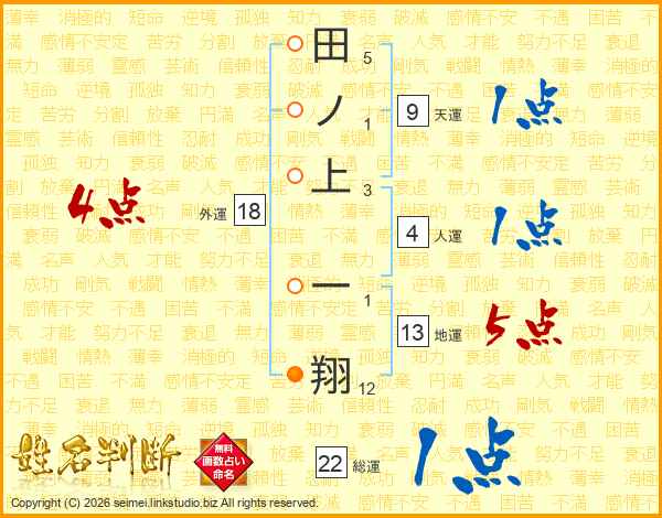 田ノ上一翔さんの総運は22画の1点!