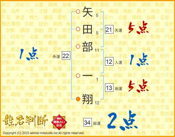 矢(5画)田(5画)部(11画) 一(1画)翔(12画)