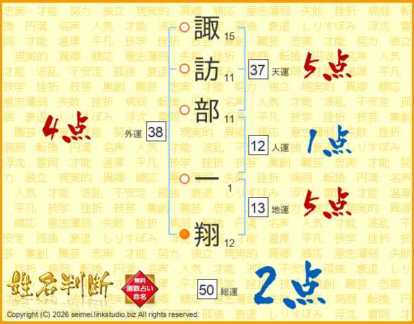 諏訪部一翔さんの総運は50画の2点!