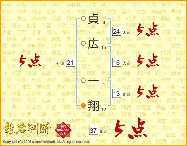 貞広一翔さんの総運は37画の5点!