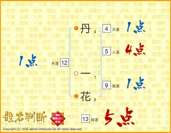 丹一花さんの総運は13画の5点!