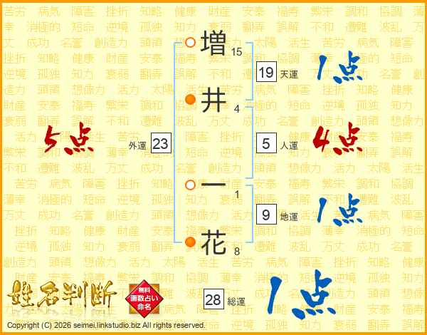 増(15画)井(4画) 一(1画)花(8画)