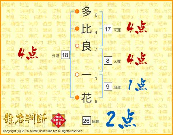 多比良一花さんの総運は26画の2点!