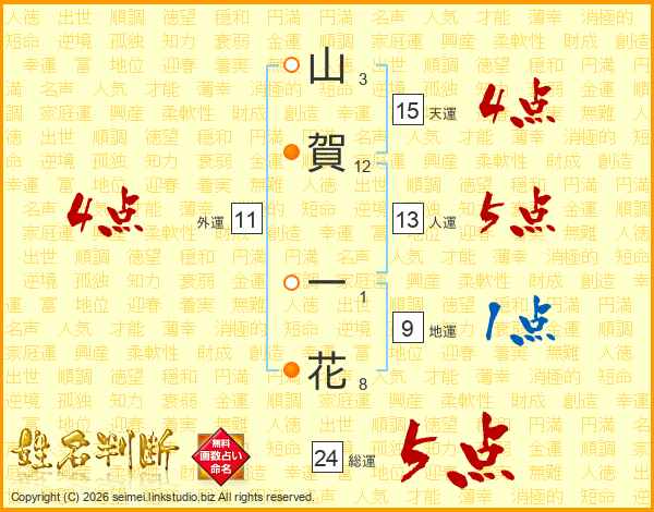山賀一花さんの総運は24画の5点!