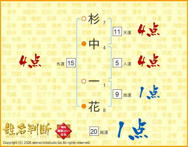 杉中一花さんの天運は11画の4点!