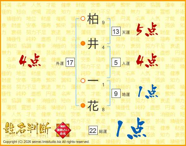 柏井一花さんの外運は17画の4点!