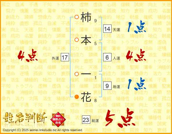 柿本一花さんの外運は17画の4点!