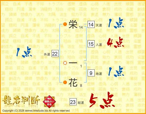 栄(14画) 一(1画)花(8画)