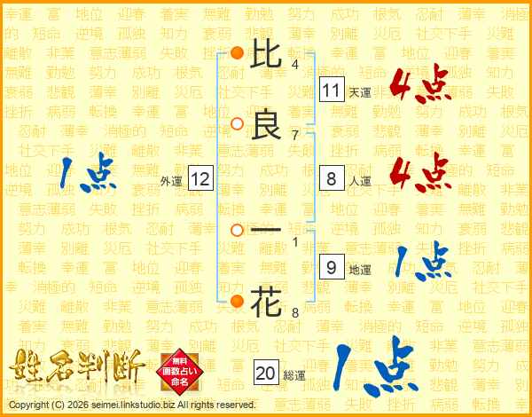 比(4画)良(7画) 一(1画)花(8画)