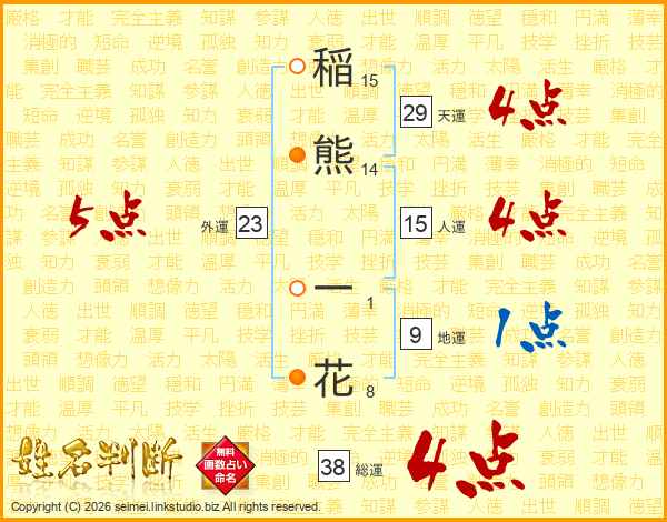 稲熊一花さんの総運は38画の4点!