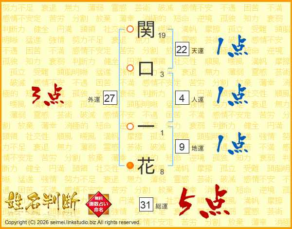 関口一花さんの総運は31画の5点!