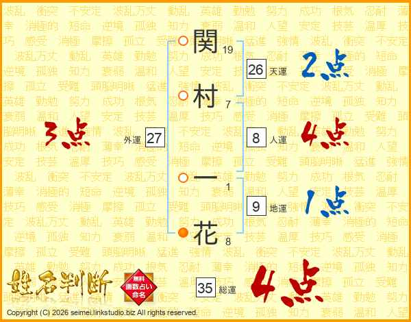 関村一花さんの総運は35画の4点!