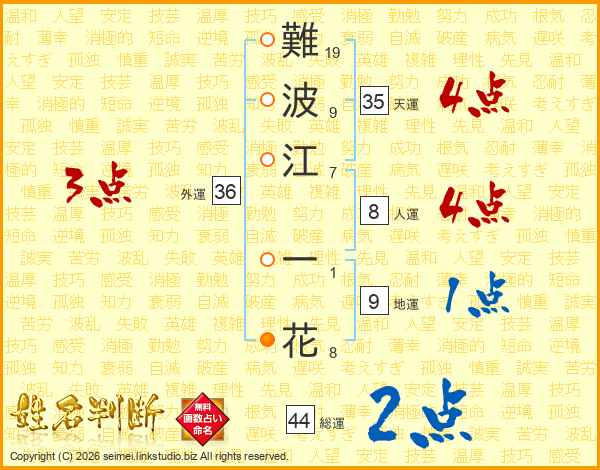 難波江一花さんの総運は44画の2点!