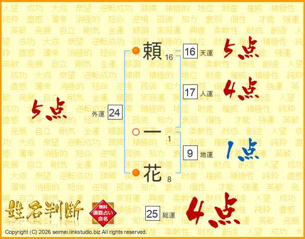 頼一花さんの総運は25画の4点!