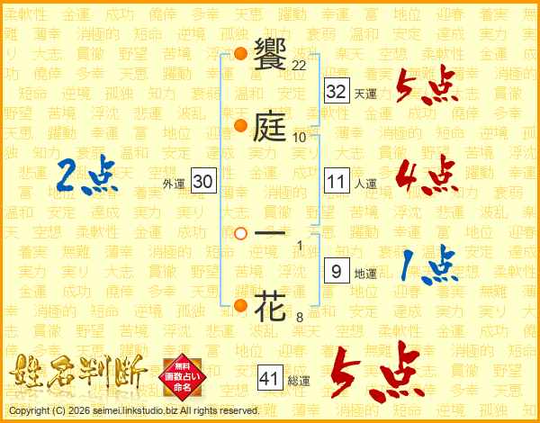 饗庭一花さんの総運は41画の5点!