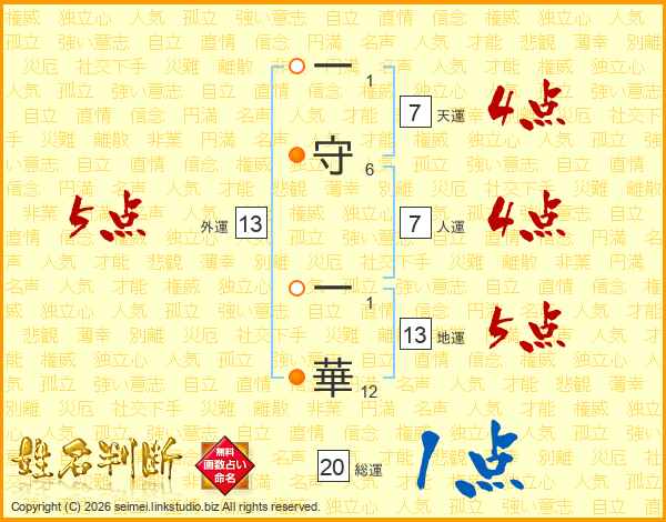 一守一華さんの総運は20画の1点!