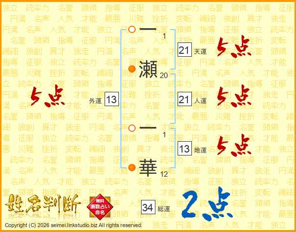 一瀬一華さんの天運は21画の5点!