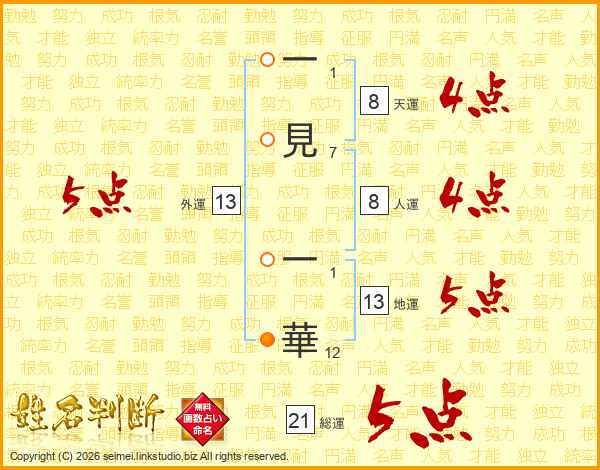 一見一華さんの外運は13画の5点!