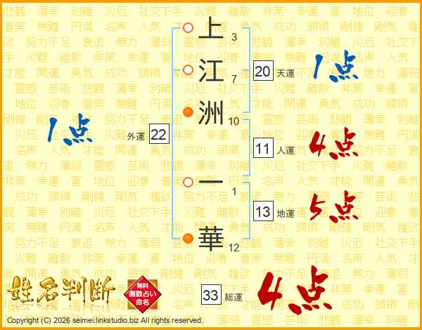 上江洲一華さんの総運は33画の4点!
