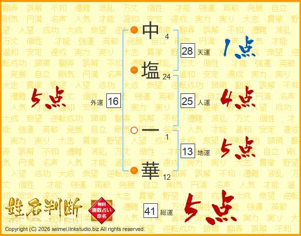 中塩一華さんの人運は25画の4点!