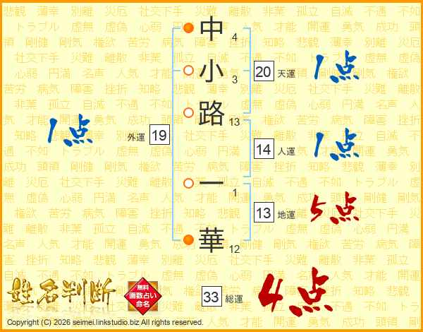 中小路一華さんの人運は14画の1点!