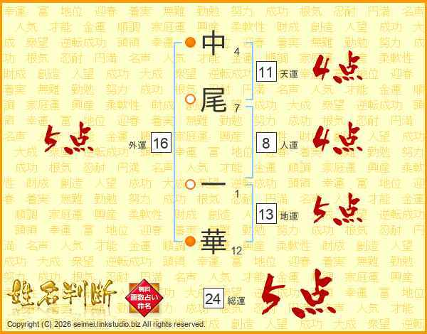 中尾一華さんの天運は11画の4点!