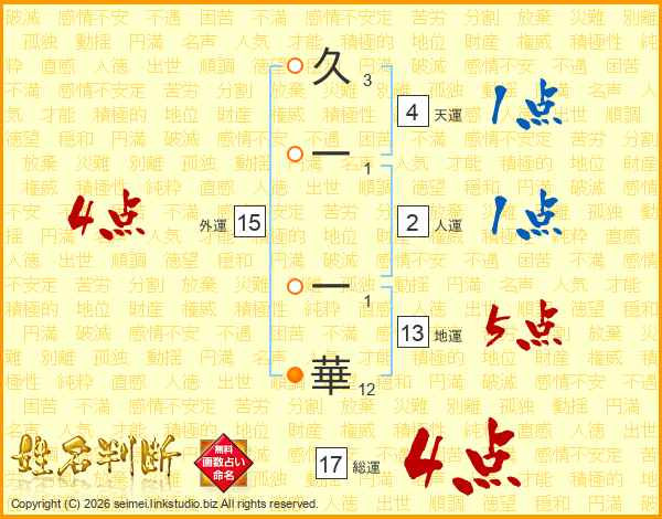 久一一華さんの総運は17画の4点!