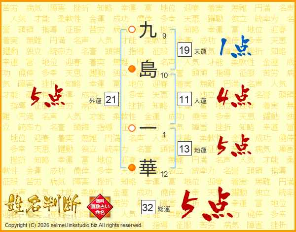 九島一華さんの外運は21画の5点!