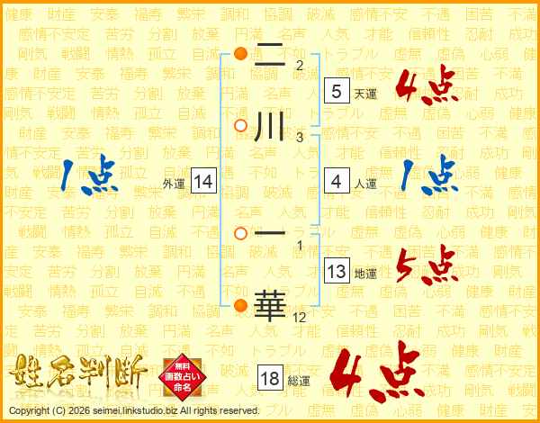 二川一華さんの総運は18画の4点!