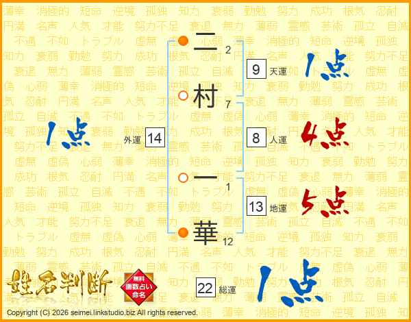 二村一華さんの総運は22画の1点!