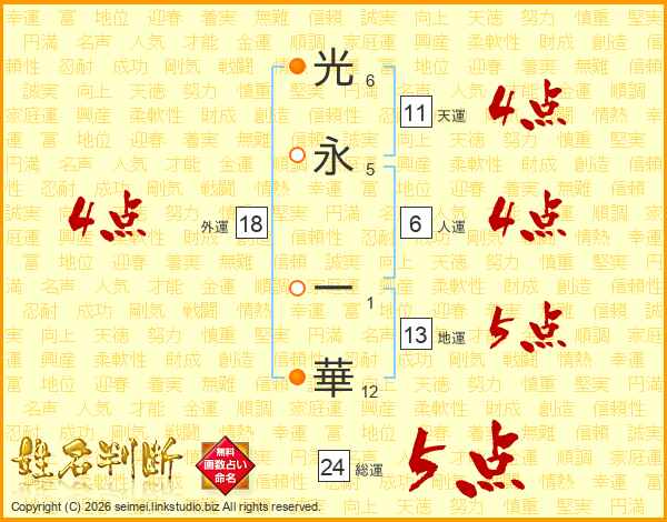 光(6画)永(5画) 一(1画)華(12画)