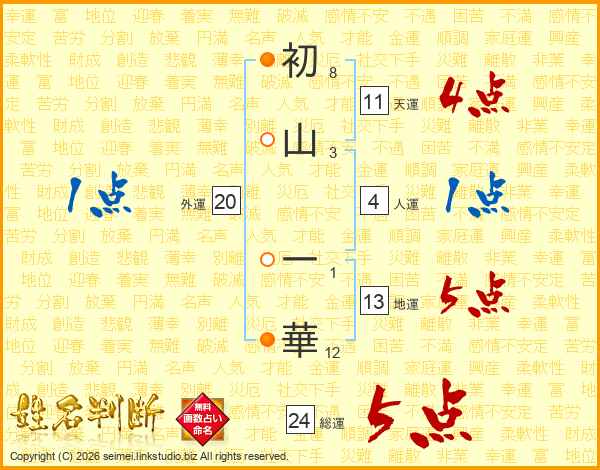 初山一華さんの総運は24画の5点!