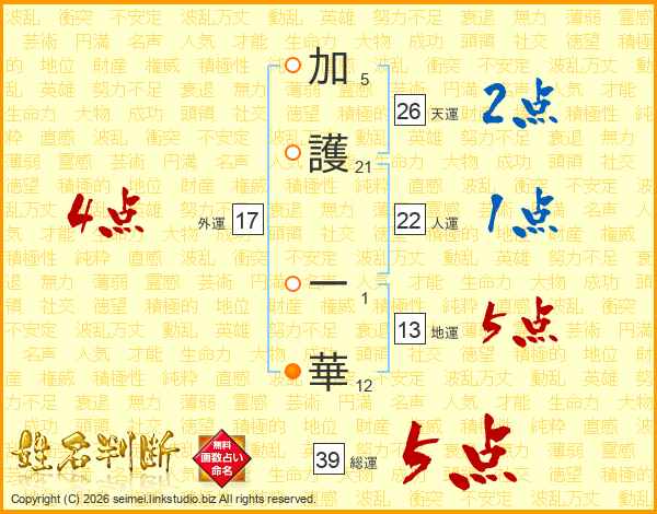 加護一華さんの天運は26画の2点!