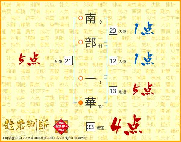 南部一華さんの総運は33画の4点!