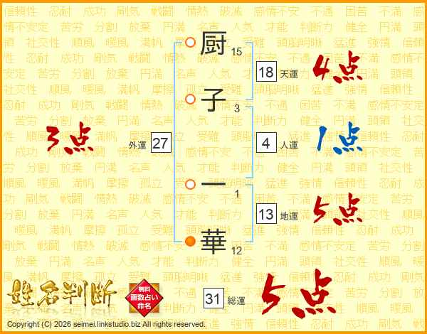 厨子一華さんの総運は31画の5点!