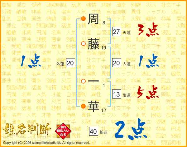 周藤一華さんの総運は40画の2点!