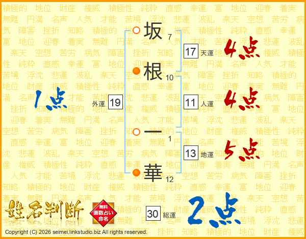 坂根一華さんの天運は17画の4点!