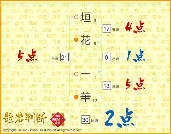 垣花一華さんの外運は21画の5点!