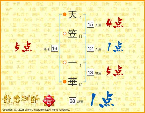 天笠一華さんの外運は16画の5点!