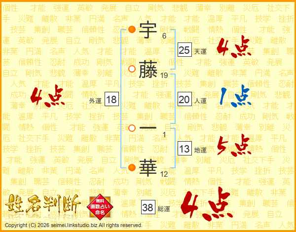 宇藤一華さんの総運は38画の4点!