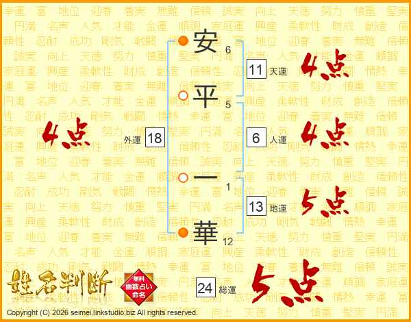安平一華さんの総運は24画の5点!
