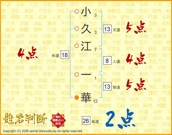 小久江一華さんの総運は26画の2点!