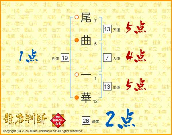 尾曲一華さんの人運は7画の4点!