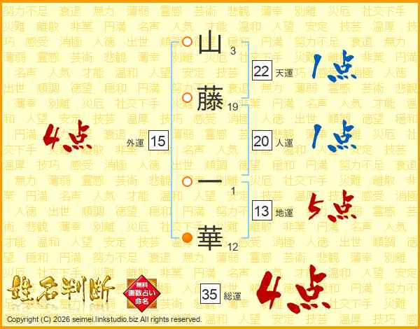 山藤一華さんの総運は35画の4点!