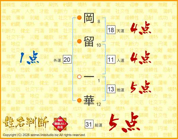 岡留一華さんの人運は11画の4点!