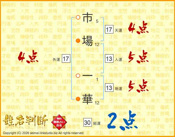市場一華さんの人運は13画の5点!