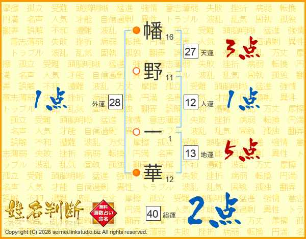 幡野一華さんの総運は40画の2点!