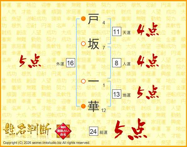 戸坂一華さんの外運は16画の5点!