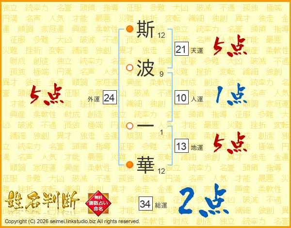 斯波一華さんの天運は21画の5点!