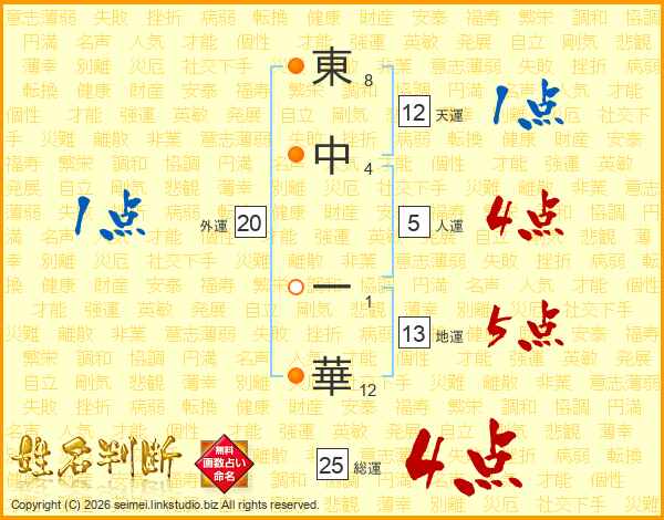 東中一華さんの地運は13画の5点!